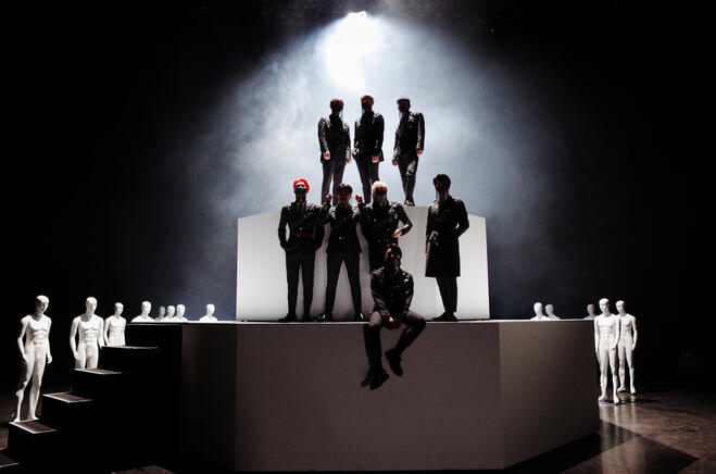 park seonghwa (박성화) is the vocalist and the oldest member of ateez. he used to be in a dance club, auditioned as a rapper and gets to rap again in ateez. he is also one of the visual in ateez and later on 2021 he was casted as one of the actor in a kdrama, imitation, along with the other members (jeong yunho and choi san).